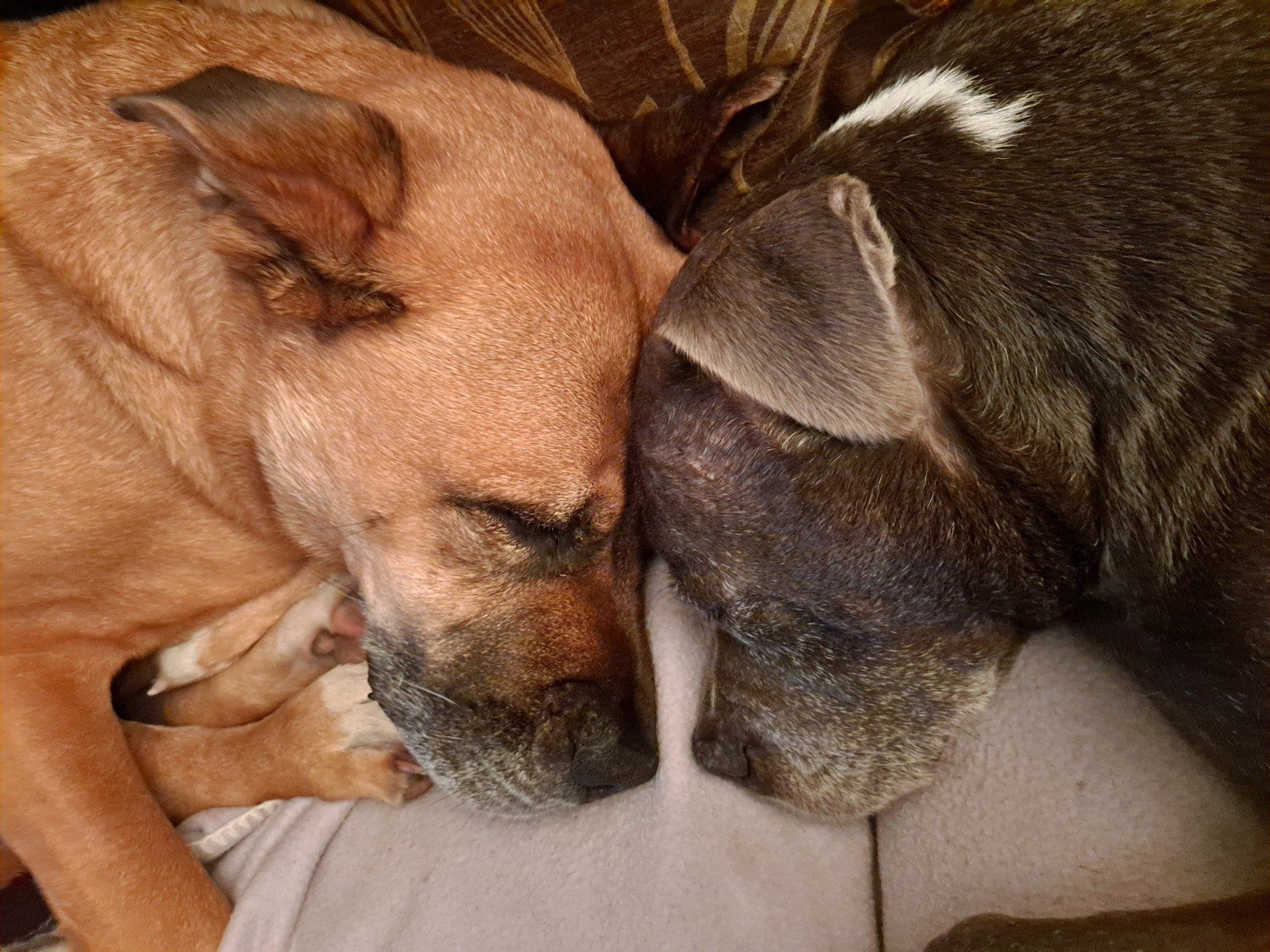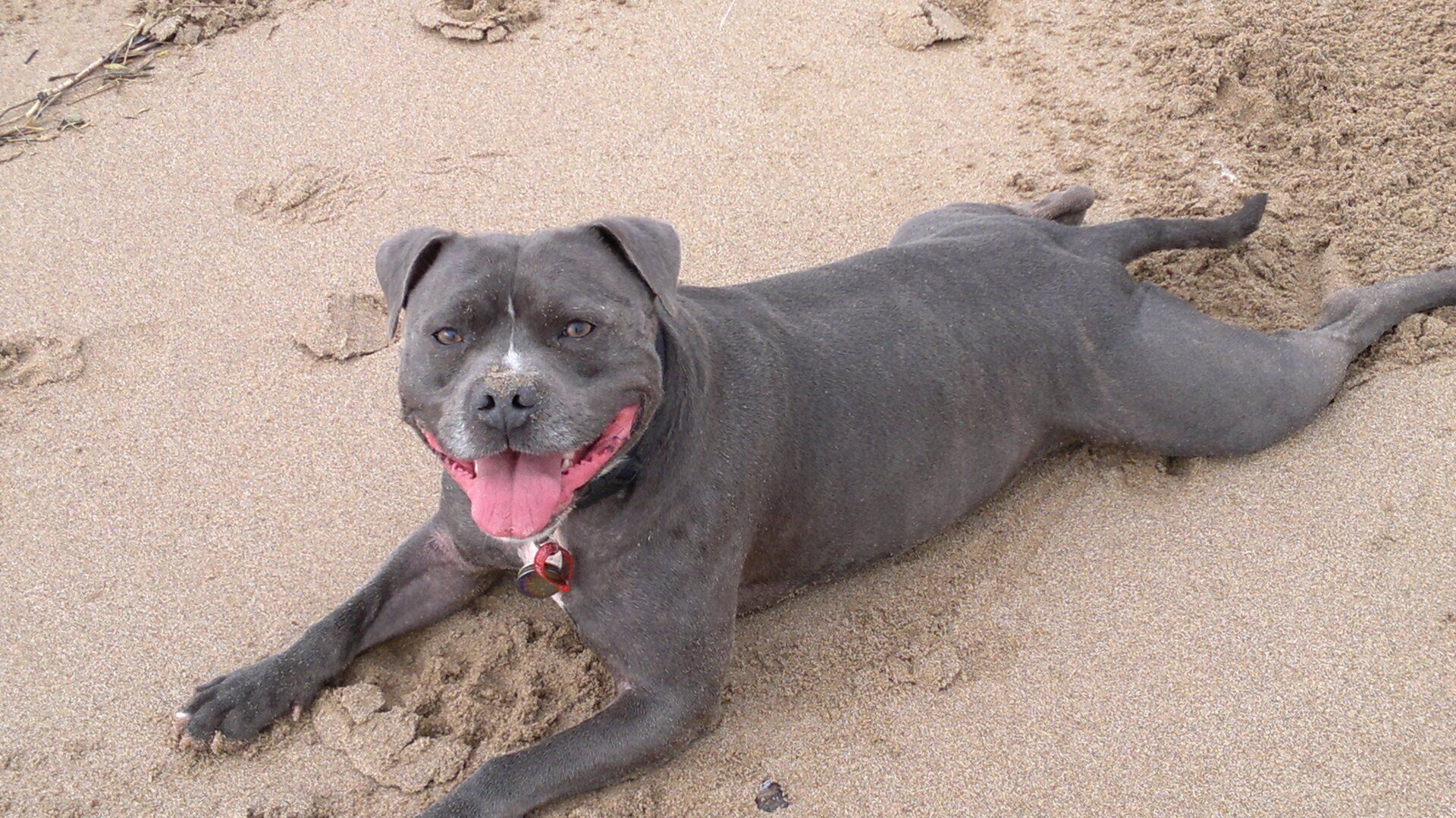 Our first dog, Trent, a Staffordshire Bull Terrier, was rescued at 18 months old in 2010, and was trained from a Pet Improver course to the Kennel Club Gold Award. He was nervous of some dogs, and due to experience and courses, Sue worked with Pets In Practise on their Reactive Rover training sessions. Trent sadly passed away in November 2022.